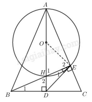 Cho tam giác \(ABC\) cân tại \(A,\) các đường cao \(AD\) và \(BE\) cắt nhau tại \(H.\) Vẽ đường tròn \((O)\) có đường kính \(AH.\) Chứng minh rằng: