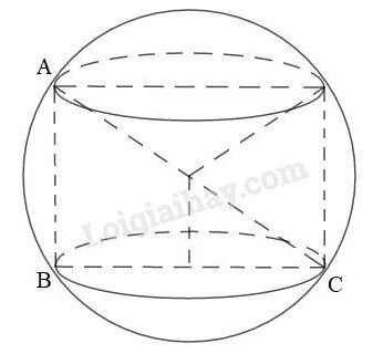 a) Đường chéo mặt cắt hình trụ đi qua trục là đường kính của hình cầu. Hình trụ có đường cao bằng đường kính đáy tức là \(AB=BC\)