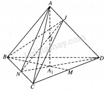 Gọi là trung điểm của BC và là giao điểm của NI với AD, khi đó mp(BCI) chia tứ diện đã cho thành hai tứ diện BCDJ và ABCJ.