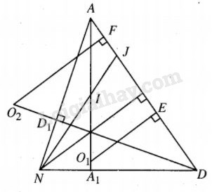 Gọi E và F lần lượt là trung điểm của DJ và AJ. Xét tứ giác nội tiếp \({O_1}{A_1}DE\) (hình 89b), ta có