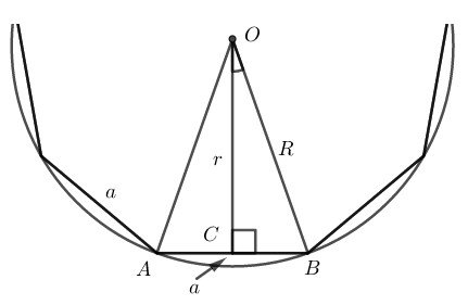 \( \Rightarrow 2R = \displaystyle{a \over {\sin \displaystyle{{180^\circ } \over n}}}\)