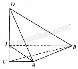 Vì IA = IB = 2a, \(\widehat {AIB}\) =1200 nên \(A{B^2} = I{A^2} + I{B^2} – 2IA.IB.\cos \) \(\widehat {AIB}\) =12a2, từ đó \(AB = 2a\sqrt 3 \). Do \(CD \bot mp(AIB)\) tại I, IA = IB nên CA = CB. Kết hợp với giả thiết  ABC là tam giác vuông, ta có ABC là tam giác vuông tại và \(CA = CB = {{AB} \over {\sqrt 2 }} = a\sqrt 6 .\)