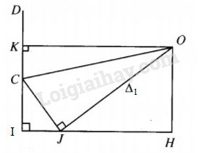 \(OH = IK = {{3a\sqrt 2 } \over 2}.\) Xét các tam giác ICJ và HJO, ta có sin C = sin J hay \({{{\rm{IJ}}} \over {JC}} = {{OH} \over {JO}}.\) Vậy \(JO = {{OH.JC} \over {{\rm{IJ}}}} = {{{{3a\sqrt 2 } \over 2}.a\sqrt 3 } \over a} = {{3a\sqrt 6 } \over 2}.\)