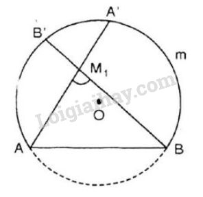 Vì \(\widehat{A{M_1}B}\) là góc có đỉnh nằm trong đường tròn chắn cung \(A’B’\) và \(AB\) nên: