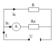 Cho một ampe kế, một hiệu điện thế U không đổi, các dây dẫn nối, một điện trở R đã biết giá trị và một điện trở Rx chưa biết giá trị. Hãy nêu một phương án giúp xác định giá trị của Rx (Vẽ hình và giải thích cách làm)
