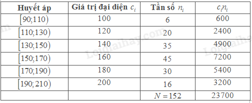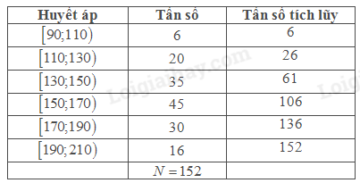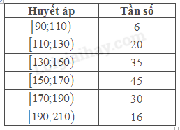 Để chuẩn bị cho đồ án tốt nghiệp, một sinh viên y khoa đã khảo sát huyết áp tối đa của một số bệnh nhân và lập được bảng tần số ghép nhóm sau: