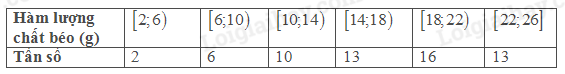Hàm lượng chất béo mà Mai tìm hiểu tập chung chủ yếu từ \(17\)g đến \(20\)g