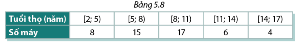 Dựa vào bảng tần số tích lũy, để biết được số máy có tuổi thọ dưới 8 năm ta xem tần số tích lũy ứng với nhóm [5,8)