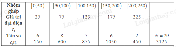 Áp dụng công thức tính trung bình ta có \(\overline x  = \frac{{3125}}{{29}} \approx 107,8\)