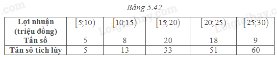 Xét mẫu số liệu về lợi nhuận hàng ngày của một cửa hàng trong quãng thời gian 60 ngày