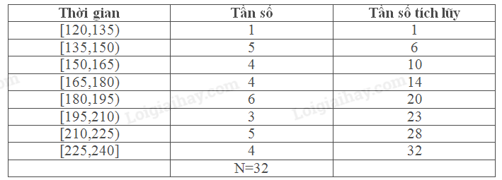 b, Thời gian tối đa của các cuộc thi trong nhóm này là \({Q_1}\)=157,5 phút .