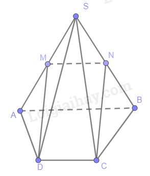 Ta có:MN là đường trung bình của tam giác SAB \(\Rightarrow MN//AB, MN= \frac{1}{2}AB \)