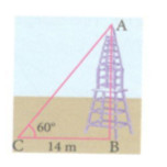 Một người đứng cách chân tháp 14 m nhìn thấy đỉnh tháp theo góc nghiêng \({60^o}\). Tính chiều cao của tháp.
