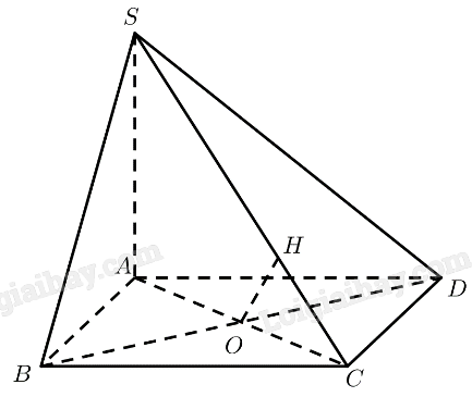 Gọi \(O = AC \cap B{\rm{D}}\), kẻ \(OH \bot SC\left( {H \in SC} \right)\)