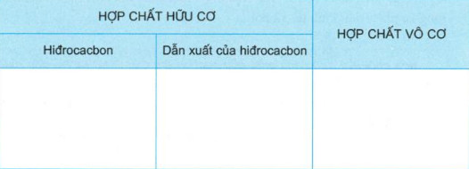 Hãy sắp xếp các chất : C6H6, CaCO3, C4H10, C2H60, NaN03CH3NO2 NaHC03, C2H302Na vào các cột thích hợp trong bảng sau :