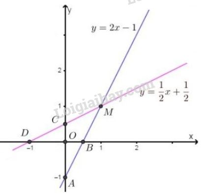 +) Quan sát hình vẽ, ta thấy hai đường thẳng cắt nhau tại điểm có tọa độ \(M( 1, 1)\).