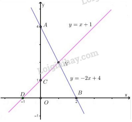 Quan sát hình vẽ, ta thấy hai đường thẳng cắt nhau tại điểm có tọa độ \(N(1;2)\).