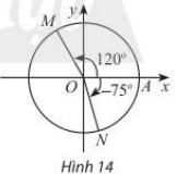 Viết công thức số đo tổng quát của các góc lượng giác (OA; OM) và \(\left( {OA;ON} \right)\) trong Hình 14: