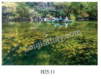 Hình H25.11 là phong cảnh dòng nước tại khu du lịch sinh thái Tràng An thuộc tỉnh Ninh Bình ở miền bắc nước ta. Dòng nước trong xanh đến mức ta có thể nhìn rõ được các loài thực vật phía dưới mặt nước. Hình ảnh các vật dưới dòng nước mà mắt ta thấy được là do các tia sáng nào tạo ra khi đến mắt ta ?