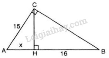 Tam giác ABC vuông tại C có AC = 15cm. Đường cao CH chia AB thành hai đoạn AH và HB. Biết HB = 16cm. Tính diện tích tam giác ABC.