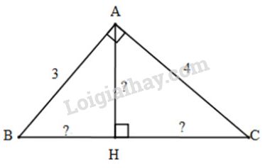Xét \(\Delta{ABC}\) vuông tại \(A\), đường cao \(AH\) có \(AB=3,\ AC=4\). Ta cần tính \(AH,\ BH\) và \(CH\).