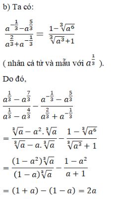 \(= {{{a^{{1 \over 3}}}\left( {1 – {a^2}} \right)} \over {{a^{{1 \over 3}}}\left( {1-a} \right)}} – {{{a^{ – {1 \over 3}}}\left( {1 – {a^2}} \right)} \over {{a^{ – {1 \over 3}}}\left( {a + 1} \right)}}  \)