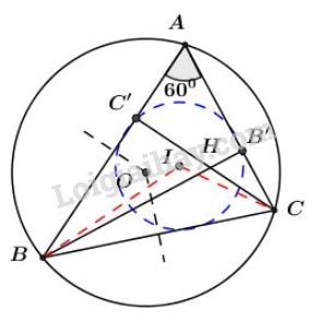 Cho \(I, \, O\) lần lượt là tâm đường tròn nội tiếp, tâm đường tròn ngoại tiếp tam giác \(ABC\) với \(\widehat{A} = 60^0.\) Gọi \(H\) là giao điểm của các đường cao \(BB’\) và \(CC’.\)