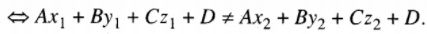 \(0 < {{A{x_1} + B{y_1} + C{z_1} + D} \over {A{x_2} + B{y_2} + C{z_2} + D}} < 1.\)