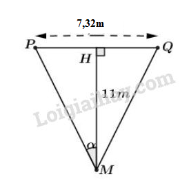 Gọi \(H\) là trung điểm \(PQ,\) thì \(PH = \dfrac{PQ}{2} = \dfrac{7,32}{2} = 3,66\)