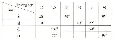 Biết \(ABCD\) là tứ giác nội tiếp. Hãy điền vào ô trống trong bẳng sau (nếu có thể).