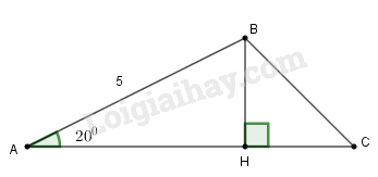 \(BH = AB.\sin \widehat A \)\(= 5.\sin 20^\circ  \approx 1,7101\left( {cm} \right)\)