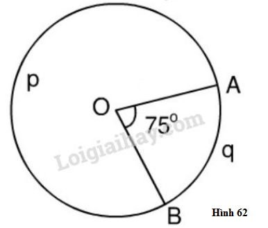 a) Từ giả thiết \(\widehat {AOB} = 75^\circ \)  \( \Rightarrow \) sđ\(\overparen{AqB}\)\( = 360^\circ  – \) sđ\(\overparen{AB}\)