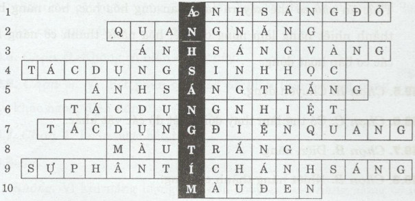 Hàng 8. Màu của vật có khả năng tán xạ tốt mọi ánh sáng màu.