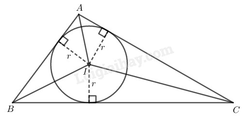 Ta có: \({S_{ABC}} = {S_{IAB}} + {S_{IAC}} + {S_{IBC}}\)