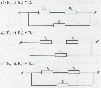 Cho ba điện trở là R1=6Ω; R2=12Ω; R3=18Ω. Dùng ba điện trở để mắc thành đoạn mạch song song có hai mạch rẽ, trong đó một mạch rẽ gồm hai điện trở mắc nối tiếp.