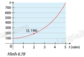 Lúc đầu trong ao có một số con ếch. Người ta ghi nhận số lượng ếch trong 5 năm đầu như Hình 6.19. Giả sử số lượng ếch tăng theo hàm số \(n\left( t \right) = C.{a^t}\).