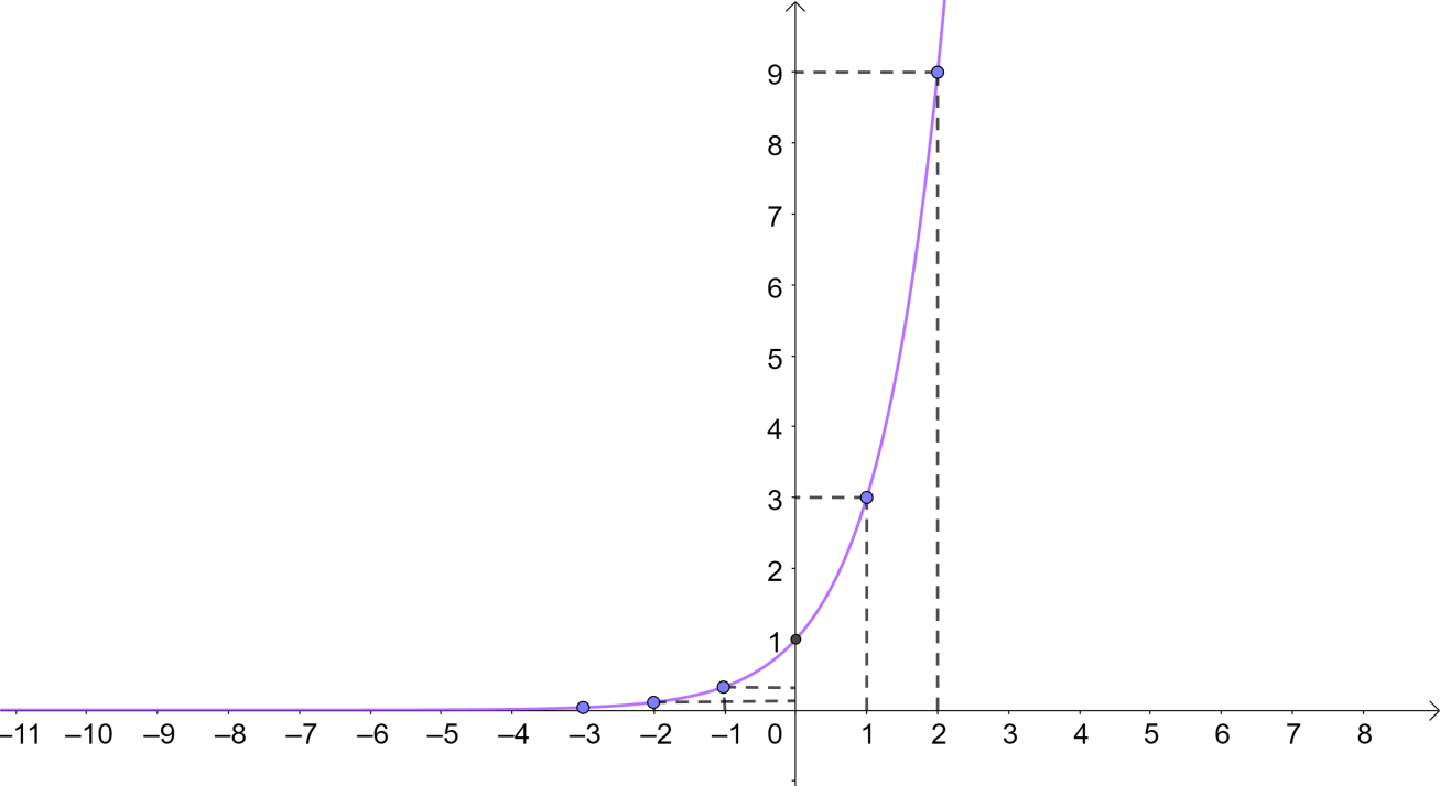 Từ đó, ta vẽ được đồ thị của hàm số \(y = {3^x}.\)