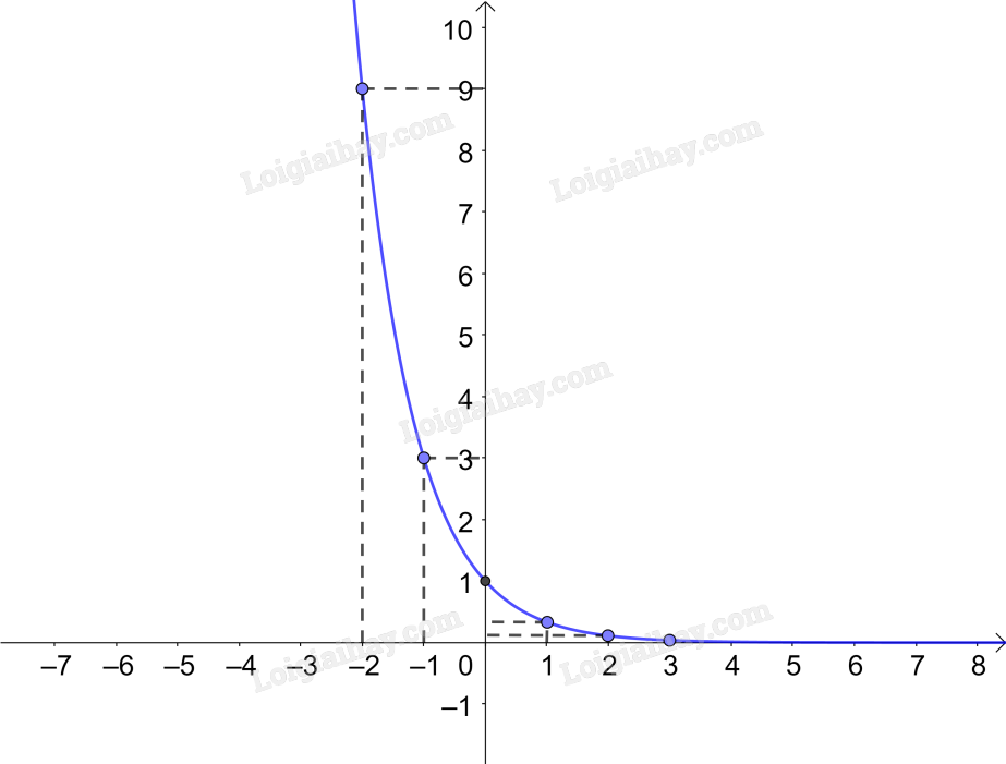 Từ đó, ta vẽ được đồ thị của hàm số \(y = {\left( {\frac{1}{3}} \right)^x}.\)