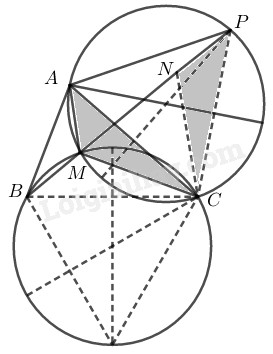 Mà \(∆AMC = ∆PNC\) (chứng minh trên)     \( \Rightarrow \widehat {AMC} = \widehat {PNC} = 120^\circ \)