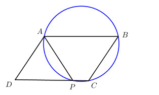 Cho hình bình hành ABCD. Đường tròn đi qua ba đỉnh A, B, C cắt đường thẳng CD tại P khác C. Chứng minh AP = AD.