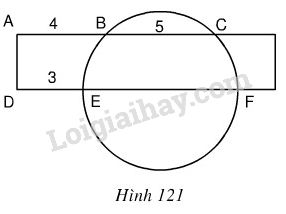 Một hình chữ nhật cắt đường tròn như hình 121 biết \(AB = 4, BC = 5, DE = 3\) (với cùng đơn vị đo).