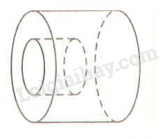 Một vật thể có dạng hình trụ, bán kính đường tròn đáy và độ dài của nó đều bằng \(2r\; (cm)\). Người ta khoan một lỗ cũng có  dạng hình trụ như hình \(89\), có bán kính đáy và độ sâu đều bằng \(r\; (cm)\).