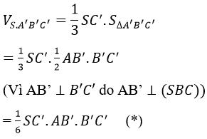 Ta có: AB’⊥(SBC) nên có thể lấy V = (1/3)AB’.SΔSB’C’=(1/6). AB’.B’ C’.SC’ rồi tính toán.