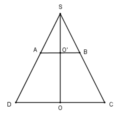 Đường cao \(SO\) của tam giác cân \(SCD\) là trục đối xứng của hình thang, do đó \(SO\) cắt \(AB\) tại trung điểm \(O’\) của \(AB\).