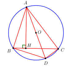 \(\Rightarrow AH = \dfrac{{AB.AC}}{{AD}} = \dfrac{{bc}}{{2R}}\)