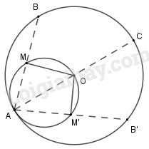 \( \Rightarrow OM’ \bot AB’\) nên \(M’\) là trung điểm đoạn \(AB’\) ( vì đường kính vuông góc với dây thì đi qua trung điểm dây đó)