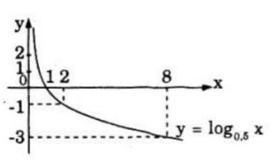 \( – 3 < {\log _{0,5}}x <  – 1 \Leftrightarrow 2 < x \le 8\) (ứng với những điểm trên đồ thị có tung độ thuộc nửa khoảng \(\left[ { – 3;1} \right)\)).