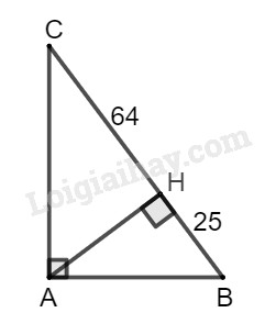 \(AH = \sqrt {HB.HC}  = \sqrt {25.64}  = \sqrt {1600}  = 40\) (cm)