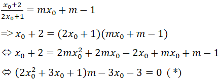 & m\left( {x + 1} \right) – 1 = {{x + 2} \over {2x + 1}}\cr & \Leftrightarrow \left( {2x + 1} \right)\left[ {m\left( {x + 1} \right) – 1} \right] = x + 2 \cr