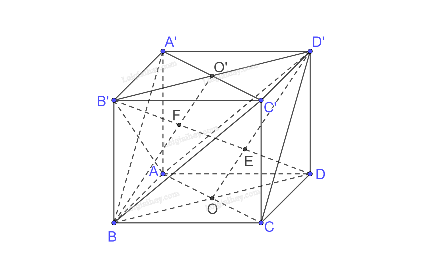 Trong (BB’D’D) nối \(D’O \cap B’D = \left\{ E \right\},BO’ \cap B’D = \left\{ F \right\}\)